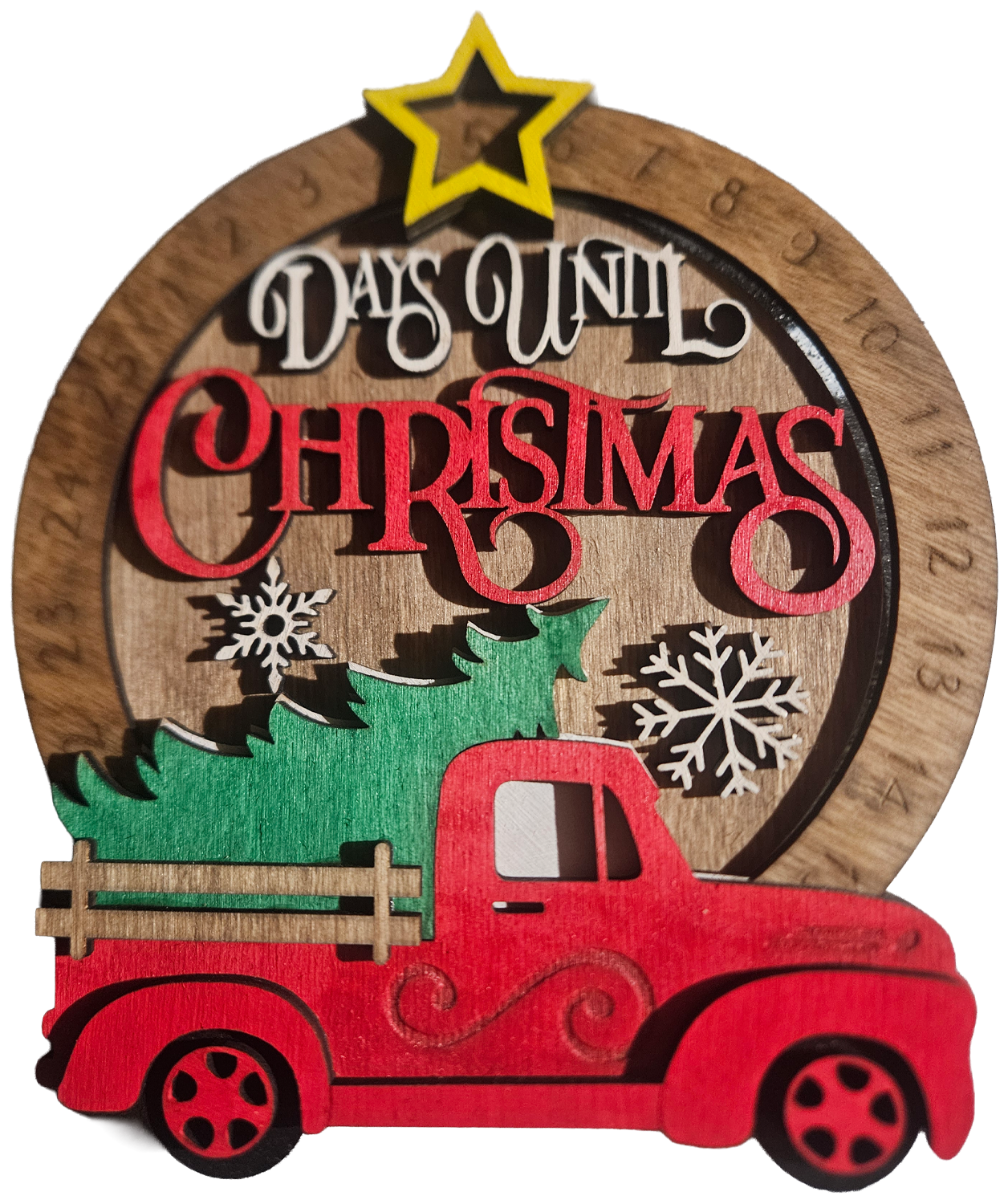 Add a spark of charm to your festive season with our charming old red truck Christmas countdown. This carefully crafted decorative piece is perfect for capturing the nostalgic magic of the holidays, while seamlessly blending style and function. Whether placed on a mantel, tabletop, or as part of your Christmas centerpiece, this delightful red truck is sure to infuse your space with warmth and holiday cheer.